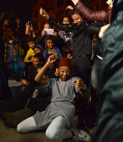 Amid heavy media presence, a crowd of young protesters gathered in front of the Muslim Brotherhood headquarters in Mokattam on Thursday night to perform the Harlem Shake.