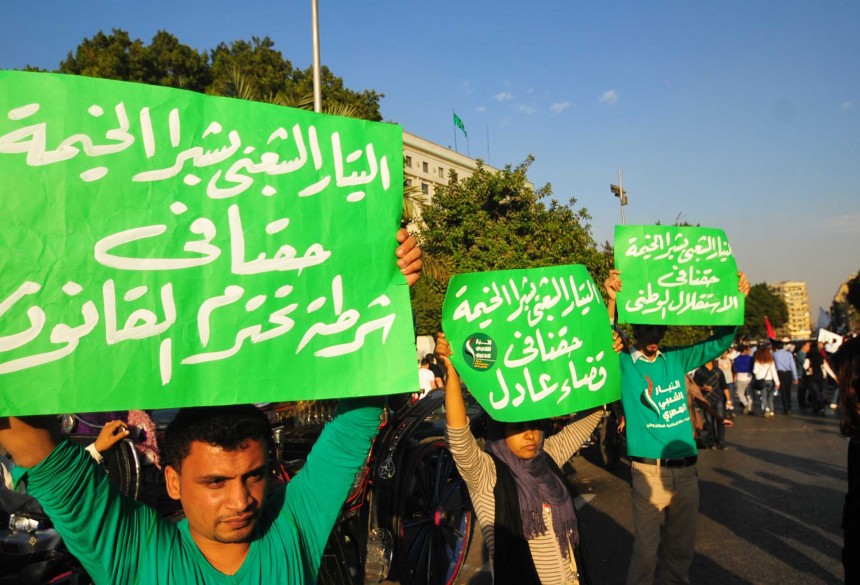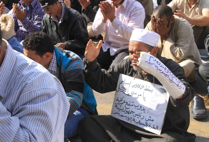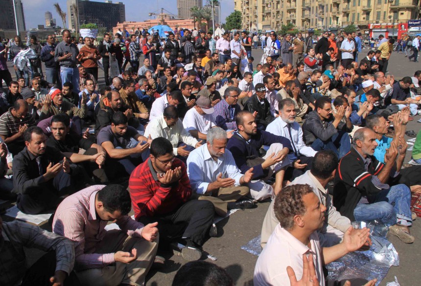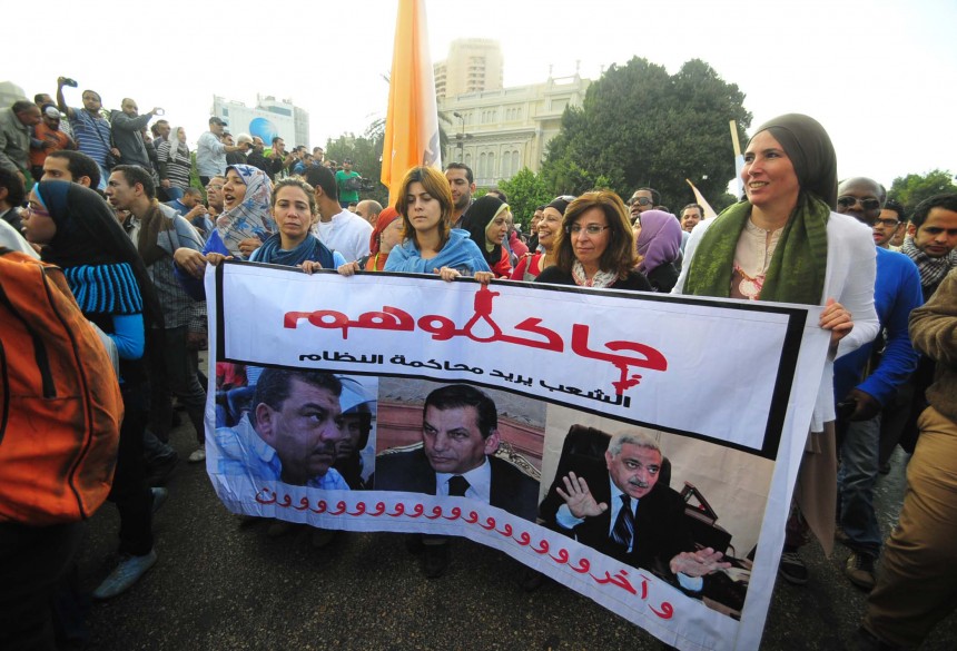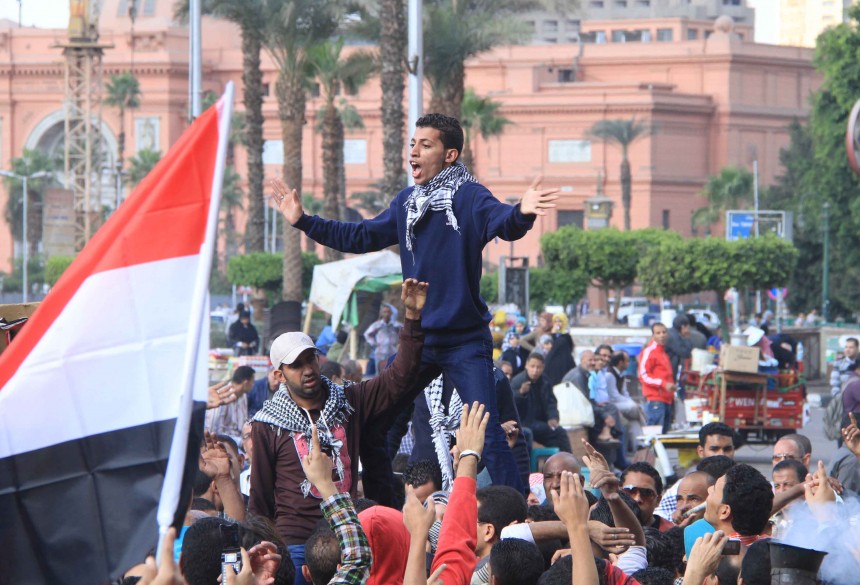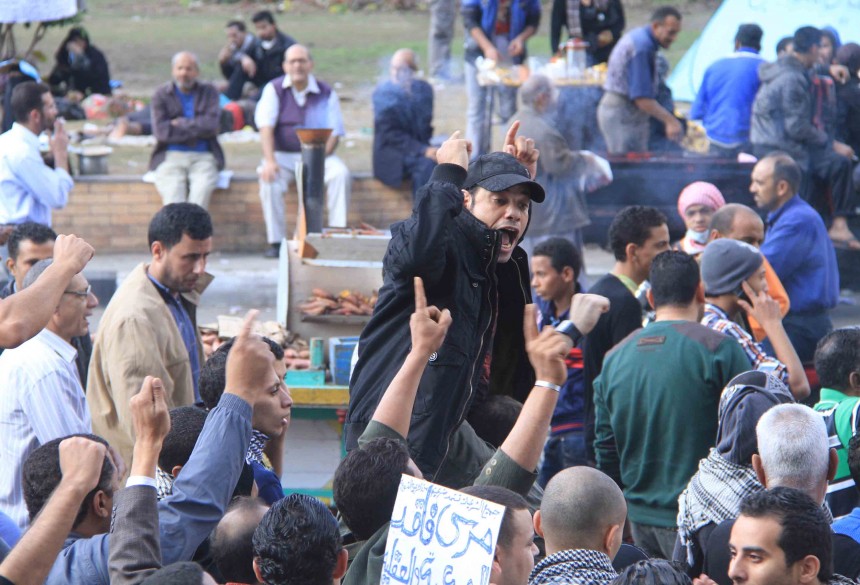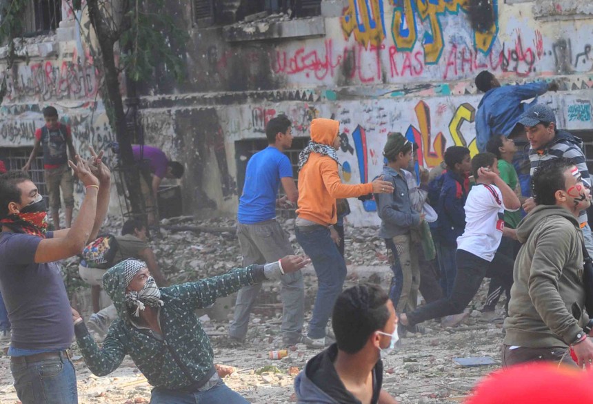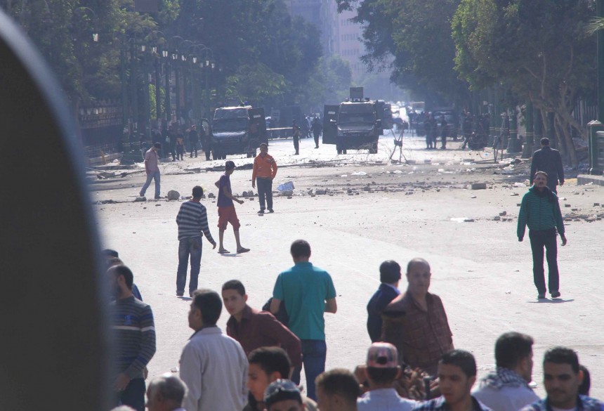 Protesters gather in Tahrir Square to show their rejection of President Morsy’s latest constitutional decree and calling for the fall of the regime, as Mohamed Mahmoud clashes continue for the fifth day. Thousands of protesters are currently marching to Tahrir.