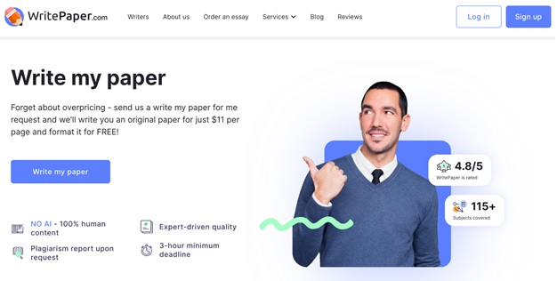 • WritePaper – Ideal for budget-conscious students. Delivers 100% human-written papers, with free revisions and work tailored to your specific needs. Also provides free formatting and reference pages.
