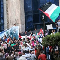 Security forces and demonstrators confront each other at the presidential palace